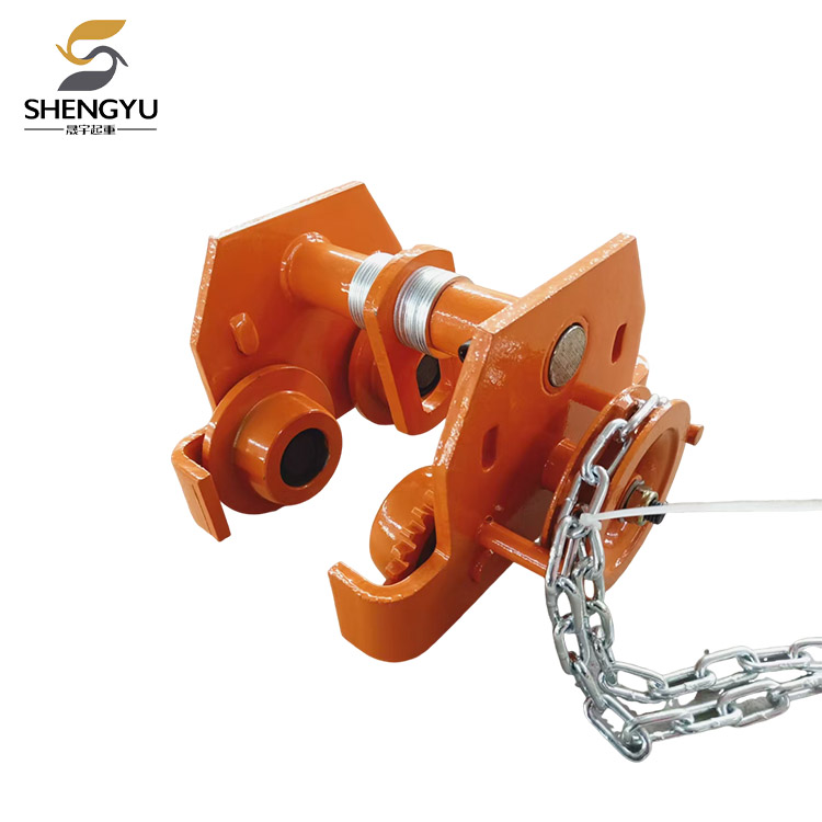 Didorong oleh rantai tangan, mereka bergerak di sepanjang tepi bawah trek I-Beam. Apabila dilengkapi dengan angkat rantai, ia berfungsi sebagai titik penggantungan mudah alih untuk mengangkat peralatan. Dengan cara ini, troli yang diarahkan bukan sahaja dapat mengangkat objek berat secara menegak tetapi juga membolehkan pergerakan kiri dan kanan objek berat.