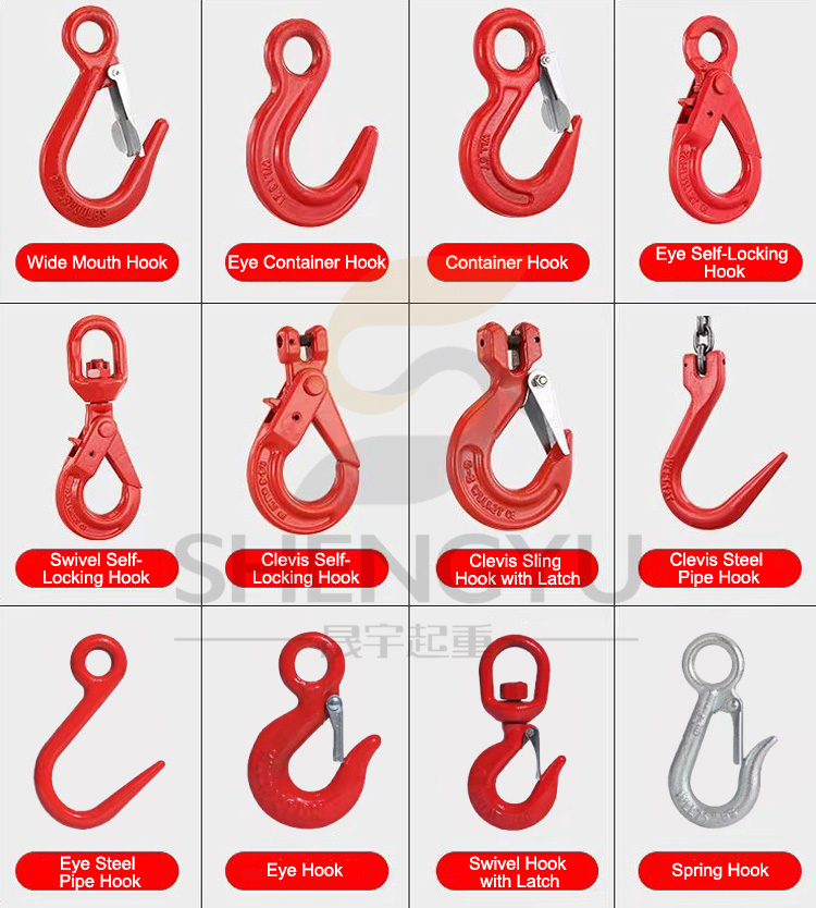 Terdapat banyak jenismengangkat cangkuk, jadi memilih yang betul adalah penting untuk projek itu. Terdapat beberapa faktor utama yang perlu dipertimbangkan ketika memilih cangkuk, termasuk kapasiti beban, senario aplikasi, sambungan belenggu, titik sambungan di kepala dan bahagian bawah cangkuk, bolt mata, swivel hoists atau sambungan titik mengangkat dan banyak lagi.
