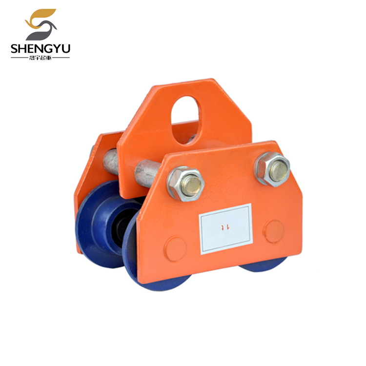 Troli biasa didorong oleh manual yang menolak untuk mengangkat objek berat dan berjalan di tepi flange bawah trek I-Beam. Dengan menggantung blok rantai atau jentera angkat lain di bawah troli, ia boleh membentuk troli mengangkat dan mengangkut manual. Ia dipasang pada talian pengangkutan monorel overhead (sama ada lurus atau melengkung) atau pada pemukul tunggal, jenis jambatan, dan kren cantilever. Ia digunakan secara meluas untuk memasang mesin dan mengangkat barangan di tempat -tempat seperti kilang, lombong, dok, kapal limbungan, gudang, dan bilik mesin, dan sangat sesuai untuk kerja penyelenggaraan peralatan di lokasi tanpa bekalan kuasa.
