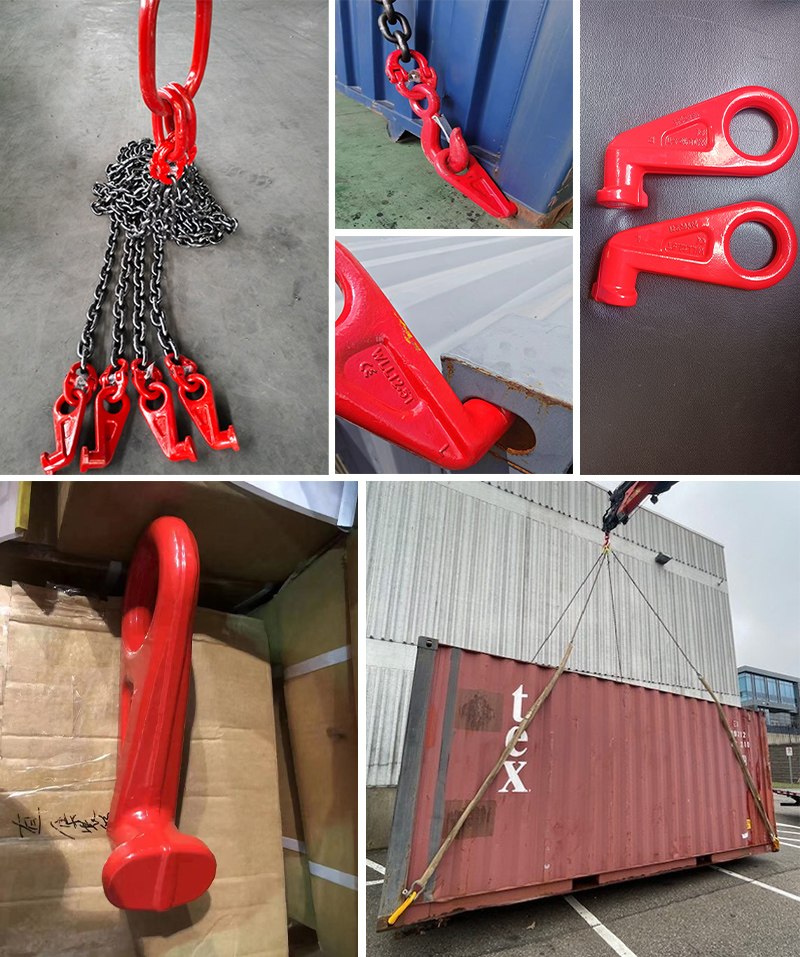 Untuk bekas standard 20ft/40ft biasa yang tidak berlebihan berat badan, 4 cangkuk (2 kiri dan 2 kanan) yang disambungkan ke empat titik mengangkat sudut cukup; Untuk bekas yang panjang (seperti 45ft dan ke atas) atau bekas berat, 6 cangkuk (2 kiri + 2 lurus + 2 kanan) diperlukan kerana lubang mengangkat tambahan di tengah untuk mengedarkan beban, dengan teras menggunakan bilangan cangkuk yang sama untuk menyambungkan titik pengangkat mengikut saiz dan berat badan kontena untuk memastikan pengagihan daya.